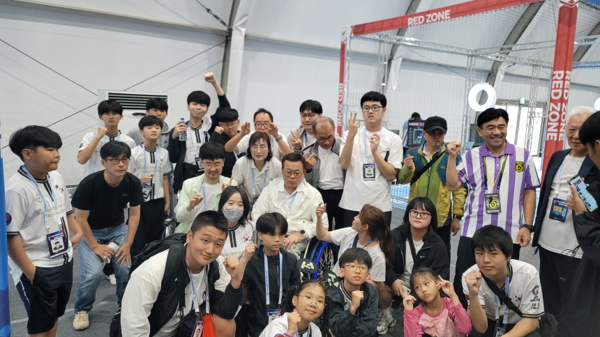 충남 서산시장애인복지관(관장 이상복) 소속 다사랑드론축구단이 지난 9월 25일(목) 전주월드컵경기장에서 열린 ‘2025 전주드론축구월드컵(Class20 부문)’에 출전했다. 이번 대회는 33개국 290개팀 1천600여명의 선수단이 참가한 국제대회로 다사랑드론축구단은 대한민국 서산시 대표로 출전했으며, 참가팀 중 유일한 장애인팀으로 많은 관심을 모았다.