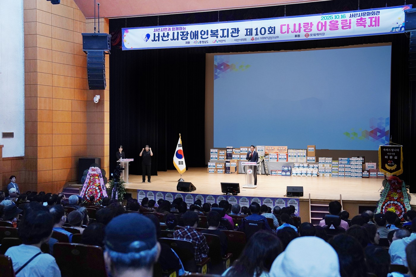 올해로 10회를 맞이한 이번 축제는 충청남도, 서산시, 서산시의회, 충남사회복지공동모금회의 지원과 롯데케미칼의 후원으로 진행됐으며, 장애인과 가족, 비장애인 등 약 600여 명의 시민이 함께해 따뜻한 감동과 즐거움을 나누는 시간이 됐다.